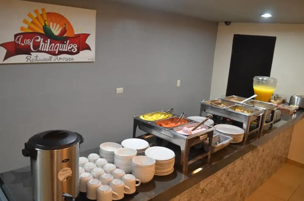 Hotel America Centro offers modern accommodations located at Miguel Hidalgo, 281 Poniente, 81200 Los Mochis, Mexico. The property features free WiFi, a restaurant, family rooms, a fitness center, non-smoking rooms, and a very good breakfast. Guests can enjoy proximity to several local attractions including Kilombo just 600 meters away, Parque Oruga within 3 kilometers, and Parque Sinaloa approximately 950 meters distant. Nearby dining options include Bar El Zuaque at 250 meters, Maxitortas located 50 meters away, and Los Nachos just 40 meters from the hotel. Additional nearby points of interest consist of Estación de Los Mochis situated 4 kilometers away and Centro de Producción de Flautas y Tacos Dorados Ashley at 100 meters. The hotel also provides complimentary parking facilities.